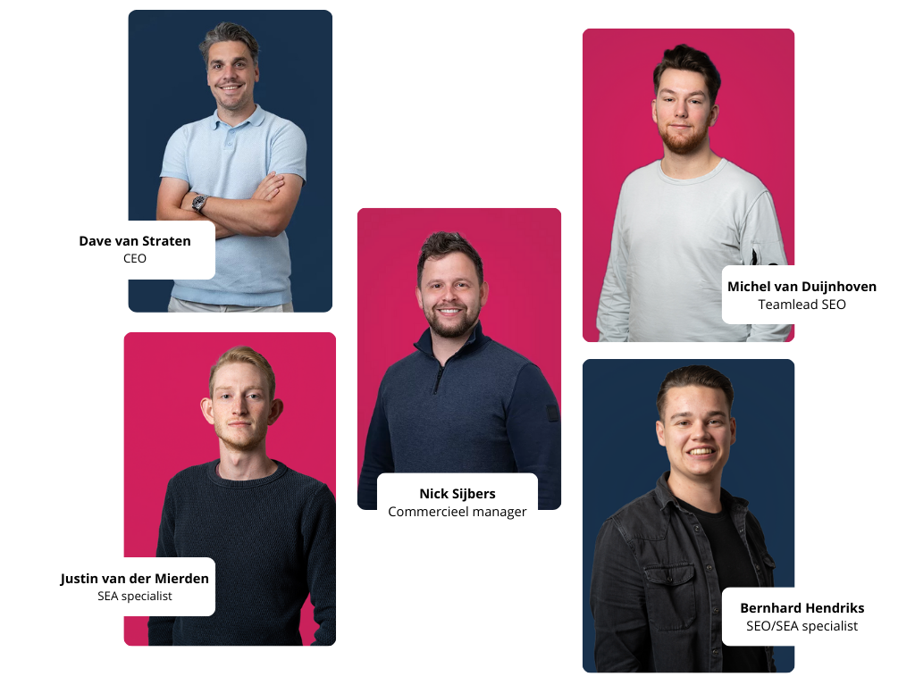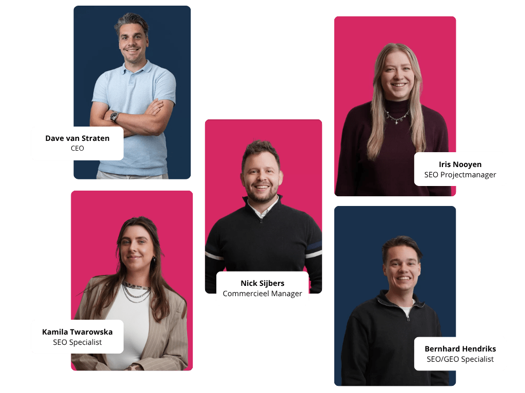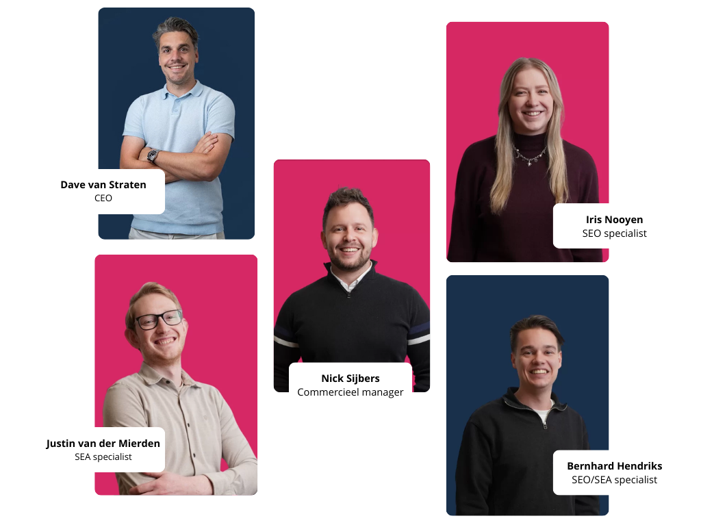 Onze experts nemen SEO, SEA, content, CRO en AI-integraties uit handen, terwijl projectleiders structuur, tempo en duidelijke voortgang brengen. Jij bepaalt de richting en wij zorgen dat elke discipline samenwerkt en dagelijks resultaat oplevert.